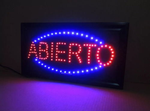CARTEL LED LUMINOSO – ABIERTO Especificaciones del producto: -Medidas: 50 x 26 x 3 cm. -Se enchufa a 220v -Apto para colgar -Super bajo consumo EXCELENTE VISIBILIDAD TANTO DE DIA COMO DE NOCHE FONDO NEGRO LETRAS ROJAS/AZULES – EXCELENTE CONTRASTE EFECTO IDEAL PARA ATRAER CLIENTES – AUMENTA VISIBILIDAD DE LOCALES ESPECTACULAR CALIDAD Y TERMINACION