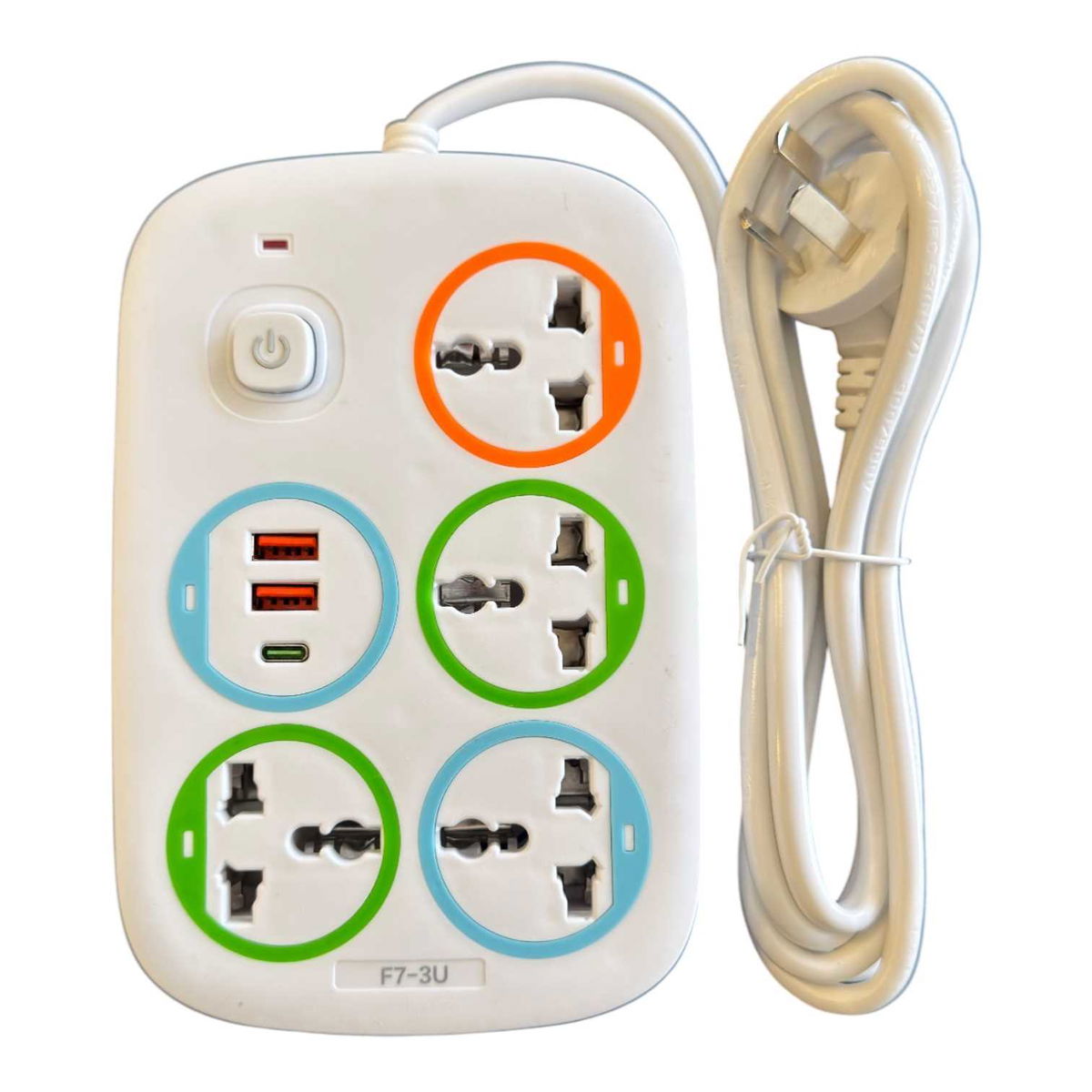 * Zapatilla Múltiple Prolongadora con 4 Tomas Universales + 2 Puertos USB + 1 Tipo C.