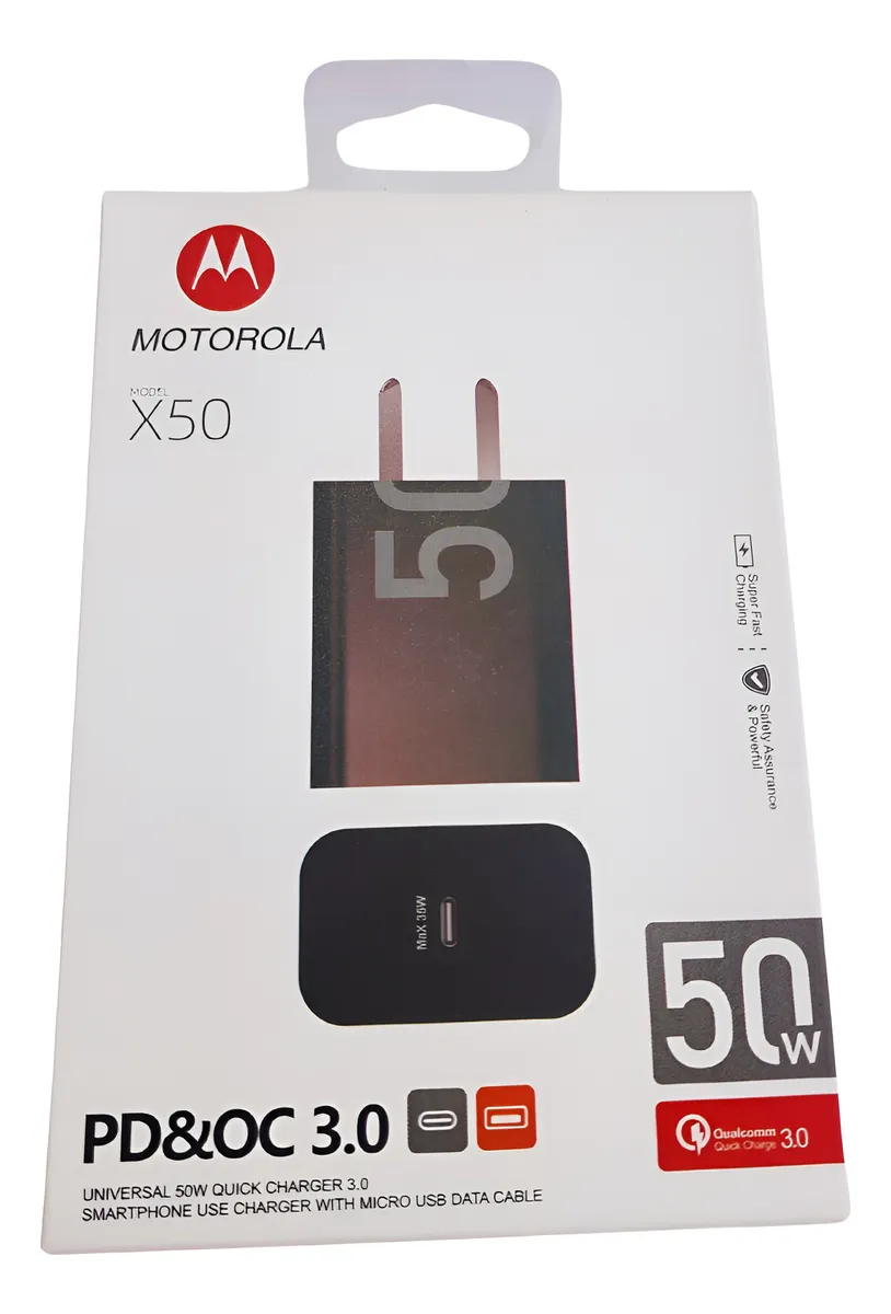 El Cargador Adaptador Motorola 50W PD 3.0 es la solución perfecta para quienes desean cargar su dispositivo móvil de forma rápida y eficiente. Con un diseño compacto y moderno, este cargador se adapta a cualquier espacio, ya sea en casa, en la oficina o durante tus viajes. Su capacidad de carga rápida te permite reducir significativamente el tiempo que pasas conectado a la corriente, brindándote más libertad para disfrutar de tu celular.