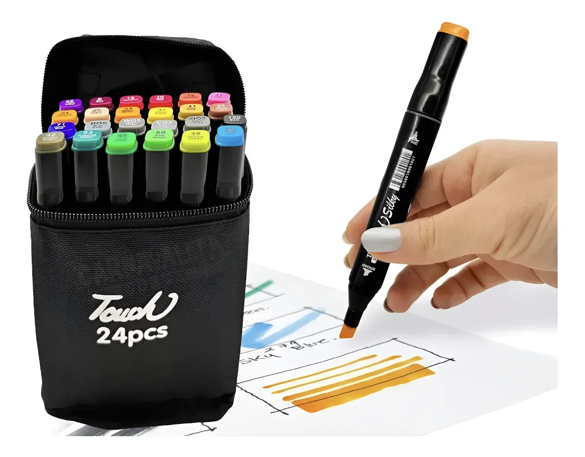 LOS MEJORES FIBRONES !DOBLE PUNTA PERMITE DIBUJAR ESCRIBIR TRAZOS FINOS Y GRUESOS. COLORES VIBRANTES IDEAL PARA CUALQUIER PROYECTO.SET 24 MARCADORES CON ESTUCHE TRANSPORTADOR DE REGALO.