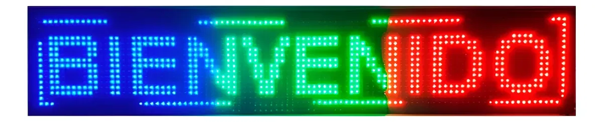 Cartel programable en led wifi. Facil de instalar + liviano portatil. Mas de 20 programaciones de texto. Se incluye la función “scrolling led sign” (desplazamiento de palabras). Pueden editarse tipo de letras – tamaño – estilos – efectos. Disponibles en RGB. Medida 100 x 20 x 6 cm. Siempre en fondo negro. Se enchufa directo a 220v. Ideal para colgar. El cartel tiene los colores Azul, Verde y Rojo