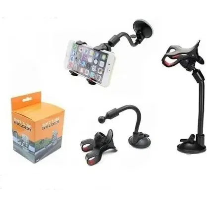 – Agarre de doble pinza con terminaciones en goma totalmente seguro – Brazo largo flexible para ajustar una vista totalmente personalizada – Fuerte succión a ventosa lavable con agua – Rotación del celular de 360º – Ideal para autos parabrisas o el parabrisas – Compatible con GPS o los Smartphones actuales más grandes – Apertura máxima de 6? aprox. (130mm)