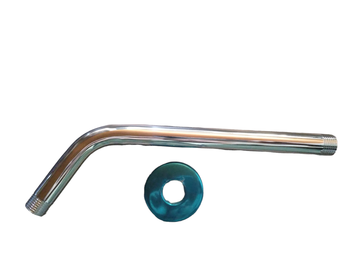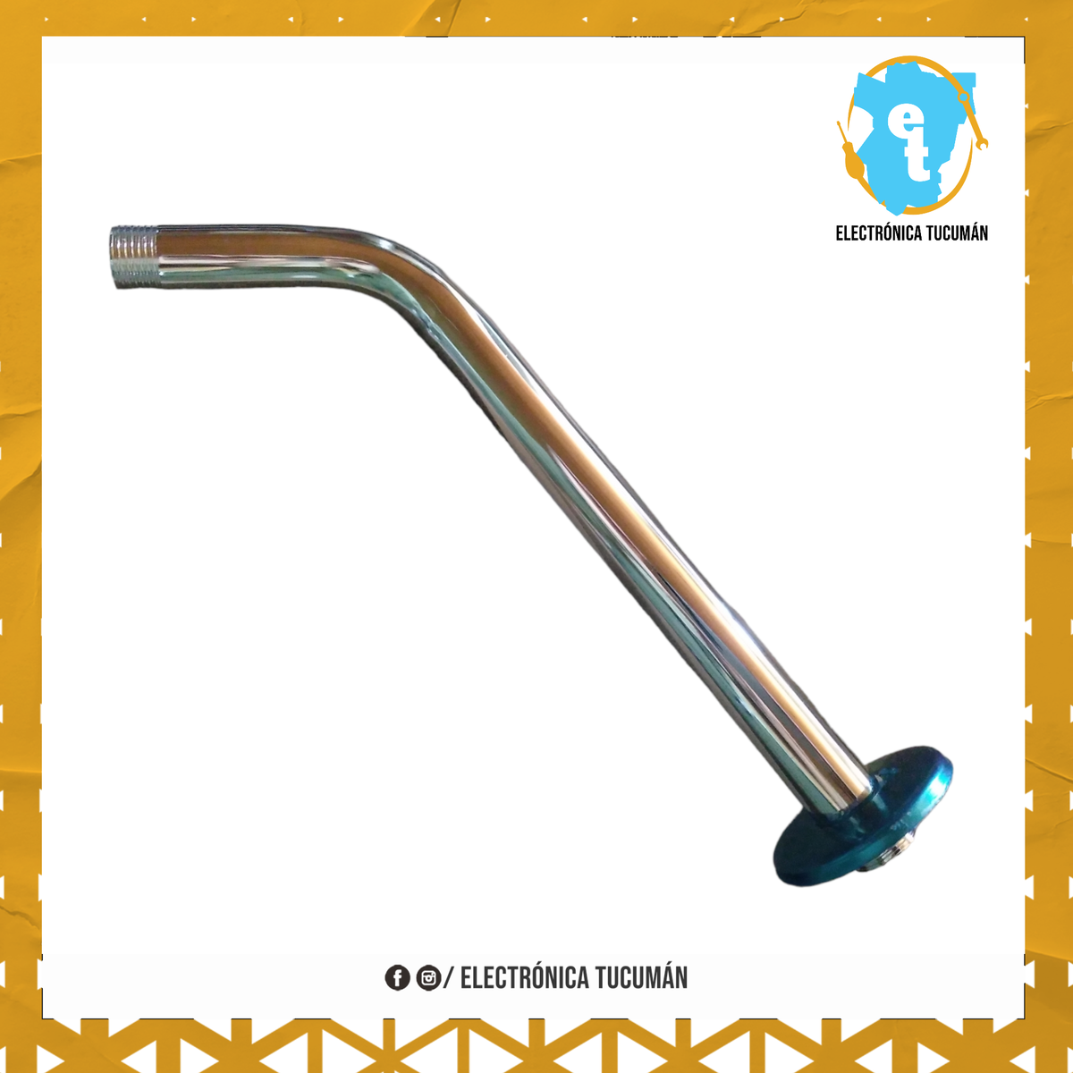 BRAZO DE DUCHA PARA BAÑO 43 CM. Caño de Acero en "L" a 90º de Acero Inoxidable. Brazo para Flor de ducha, Diseño redondo y terminacion Cromada. con Rosca universal de 1/2 pulgada. DATOS TECNICOS: - Medida Largo: 40 cm. - Material: Acero Inoxidable. - Roscas 1/2 "