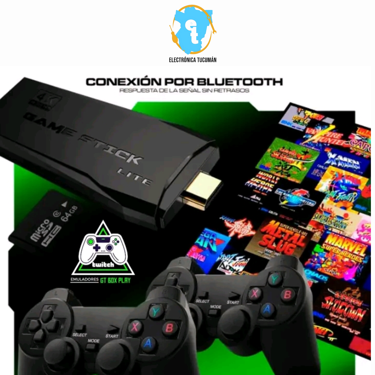 Consola Retro con 10000 Juegos vintage 4K 1080P. Conecta el stick por HDMI y USB A La TV y juga con los dos mandos inalámbricos incluidos a los mejores juegos de la historia. Emula juegos de MAME / FC / GB / GBA / GBC / MD / SFC / PS1 / ATARI2500 / ATARI7800. Incluye: Super Mario Bross 1 / 2 / 3 Metal Slug Super Sidekick Tortugas Ninja Zelda Pokemon Sonic Arkanoid Tetris Pac-Man Entre otros mas de 10000 juegos originales vintage retro y clasicos.