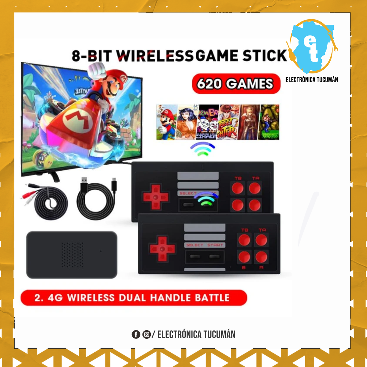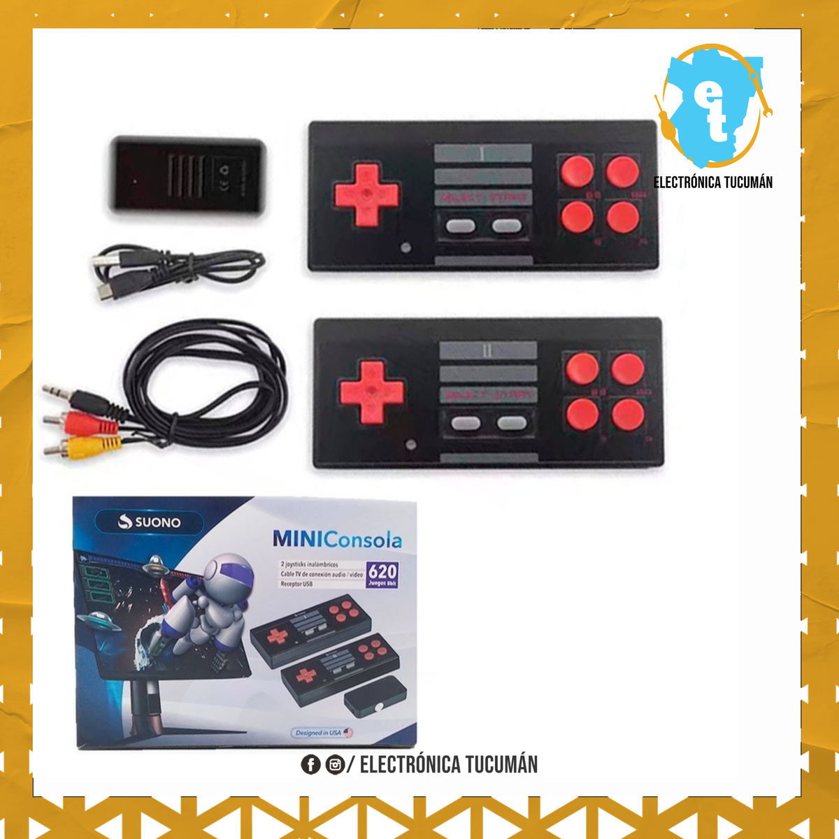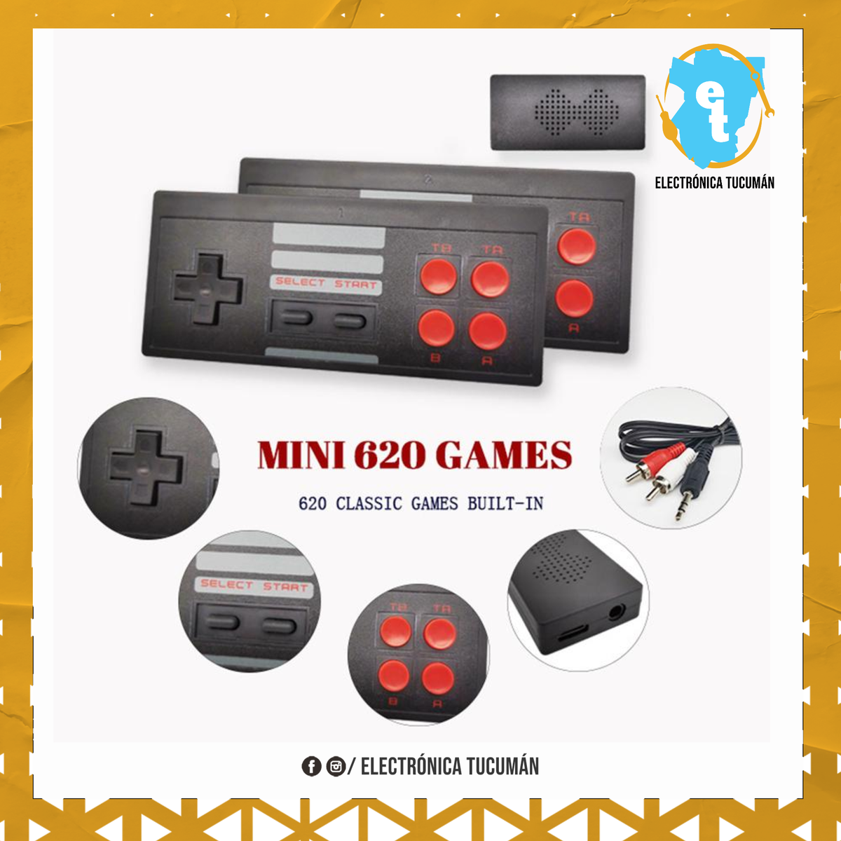 diversión para toda la familia con una excelente consola y los juegos clásicos de tu infancia para disfrutar al lado de los más pequeños de la casa. Juegos como Mario Bros, Contra, Tetris, Tank y muchos más que te harán revivir tus mejores momentos. PRODUCTO: Consola Retro Mini EDICIÓN DE ANIVERSARIO. 620 juegos clásicos incorporados. Adecuado para la diversión y la recreación en familia. Contiene: - Consola de juegos. - Dos Joystick Inalambricos, clásicos de la época. - Cable de audio / video para TV. - Enchufe de la corriente eléctrica.