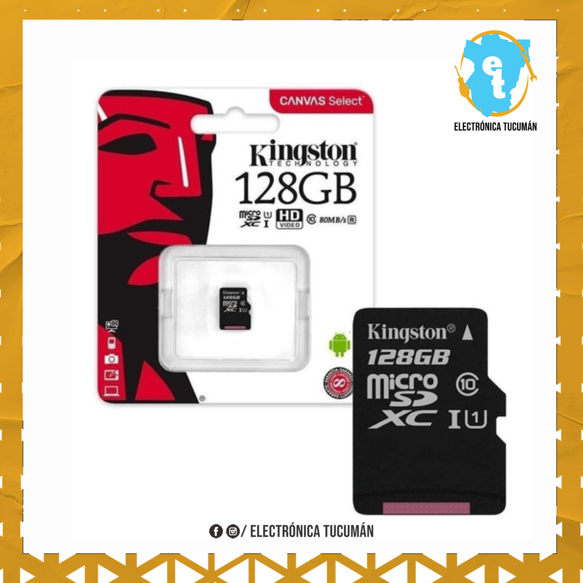 Desde hace más de 30 años, Kingston fabrica productos con la más alta calidad del mercado. Encontrarás en esta marca compatibilidad, practicidad y garantía de por vida. Kingston ofrece memorias para servidores, computadoras de escritorio, dispositivos de telecomunicaciones y de redes, estaciones de trabajo, impresoras y hasta electrodomésticos digitales y cámaras. Optimizá tu espacio y ganá tiempo Esta tarjeta microSDXC posee un almacenamiento confiable y de gran rendimiento. Ideal para filmar videos de alta resolución y fotografías con alto nivel de detalle. Máximo rendimiento Ahorrá tiempo gracias a su velocidad clase 10, que posibilita la transferencia de datos de forma rápida y efectiva. Versátil y funcional ¡Usala donde quieras! Su adaptador SD facilita la colocación de la tarjeta en distintos aparatos electrónicos, lo que te permitirá intercambiarla y ganar espacio en el equipo que necesites. Guardá tus videos con la máxima resolución Gracias a su tecnología avanzada vas a poder registrar videos en Full HD. Disfrutá de cada momento de filmación, sin preocuparte por su calidad de almacenaje.