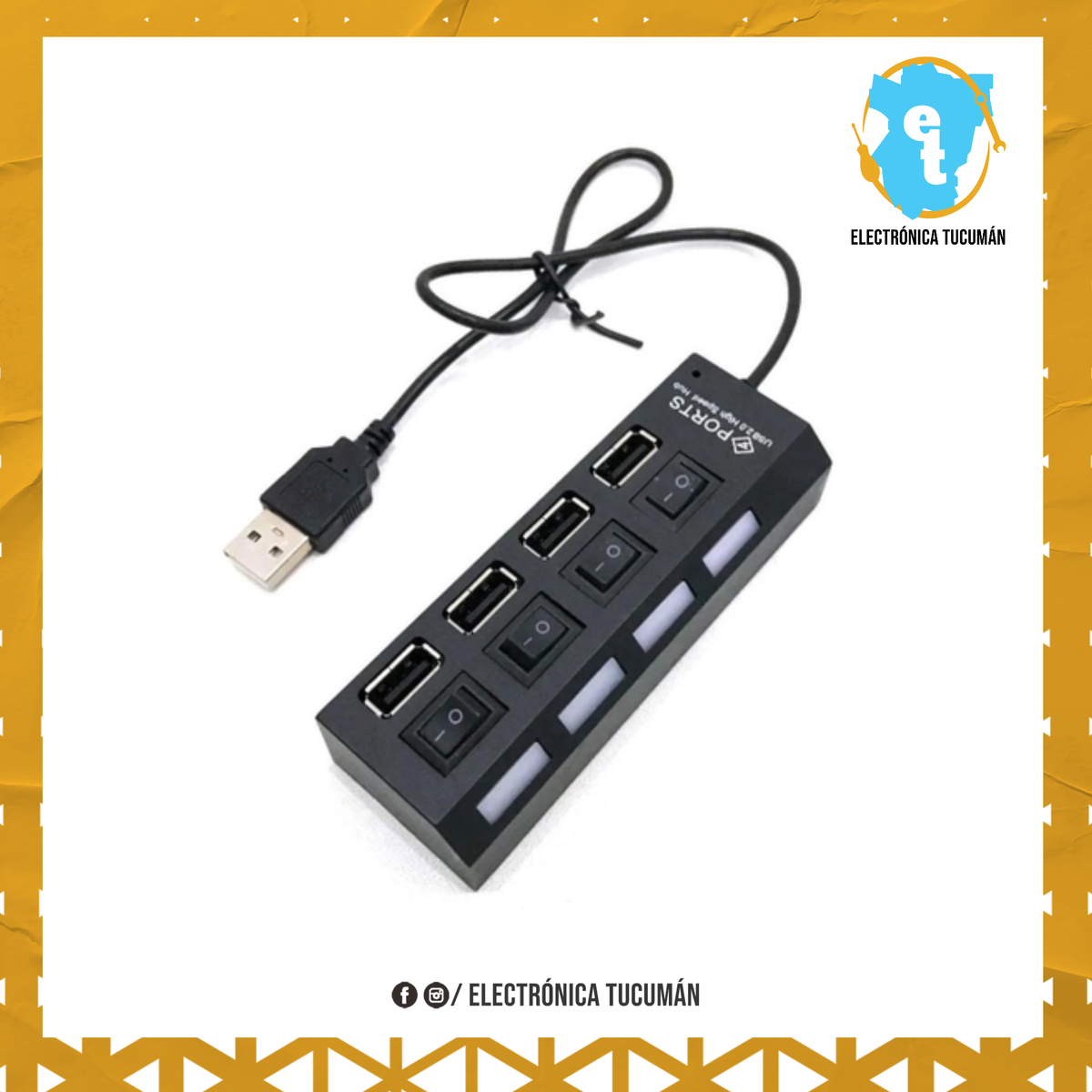 HUB USB 2.0 DE 4 PUERTOS, PLUG AND PLAY. Los cuatro puertos USB le permite conectar múltiples periféricos al mismo tiempo, como un mouse, teclado, lector de tarjetas, cámaras digitales y otros dispositivos. ESPECIFICACIONES – Compatible PC (Windows) y Mac (OS) – Velocidad máxima de transferencia de datos: 480 mbps. – Longitud Del Cable: 1 metro – Color: Negro – Conector A x 4: USB estándar tipo A hembra – Conector B x 1: USB estándar tipo A macho – Compatible Con Especificación USB: 2.0 y 1.1 – No requiere instalación de controlador.