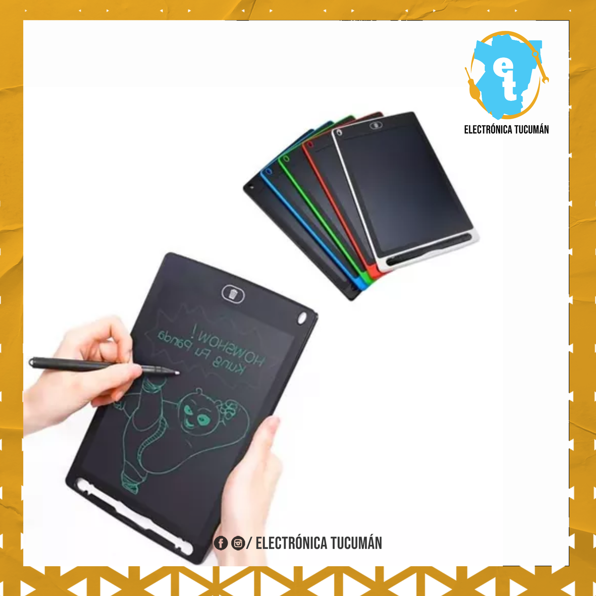 - PIZARRA MULTICOLOR 8,5" - Escritura sensible a presión - Botón de borrado - Perilla protección del contenido - Producto resistente - Eco Amigable - No mas papel! - Funciona con pila (Incluida) - Viene con su lápiz Colores: Negro, Rojo, Celeste, Verde y