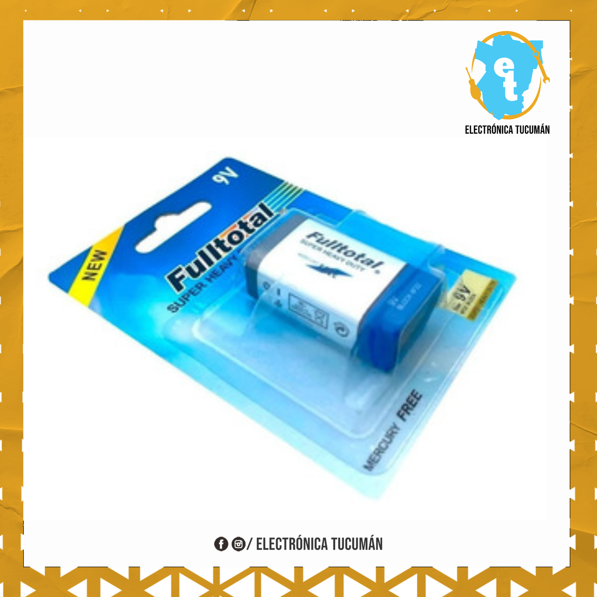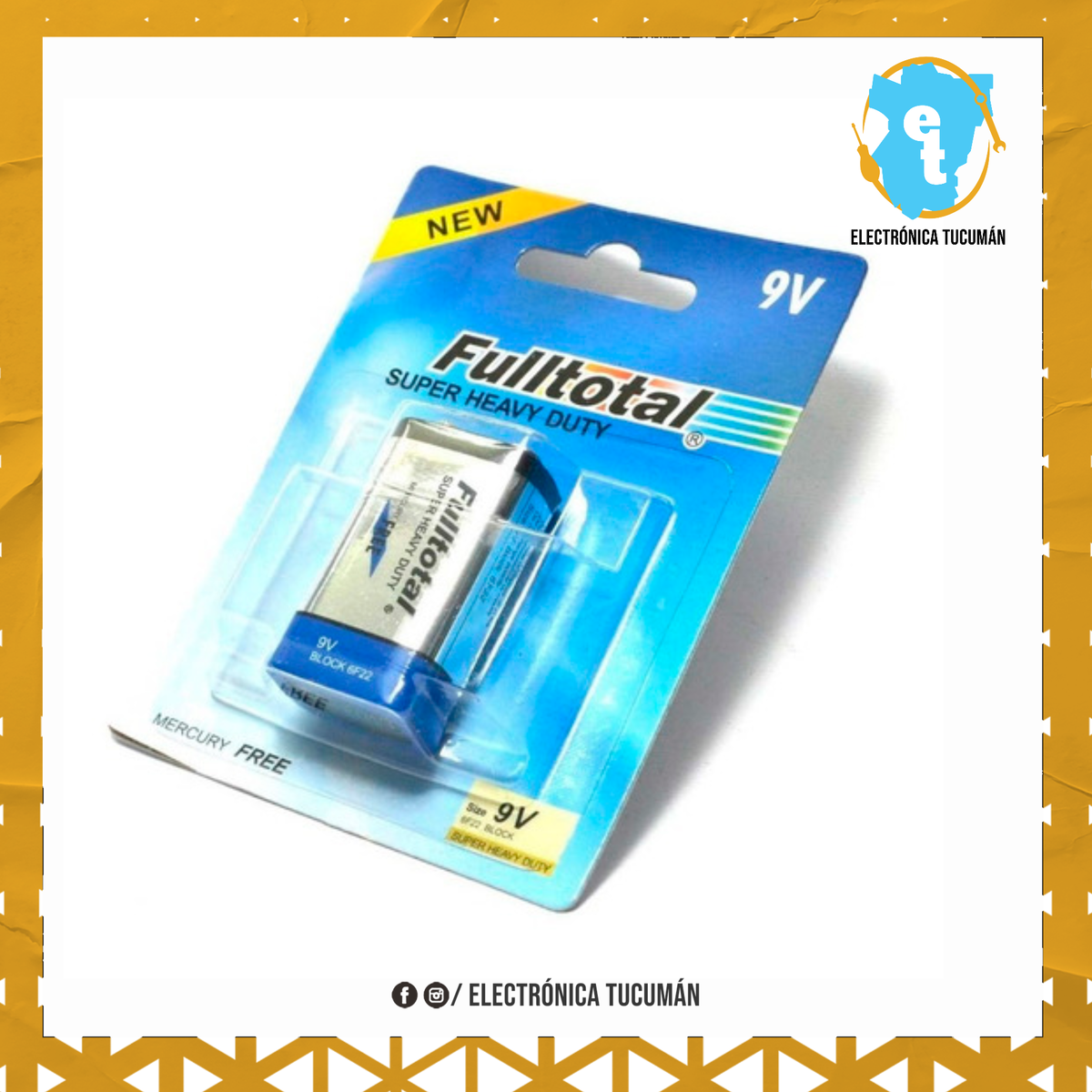 Bateria 9V Super Heavy Duty (carbon) marca Fulltotal, libre de mercurio. Ideal para controles remotos, testers y juguetes.