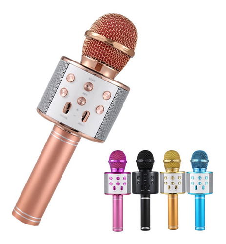 MICROFONO KARAOKE NIÑOS 5W INALAMBRICO BLUETOOTH EFECTOS DE VOZ PARLANTE REPRODUCTOR .Ideal para karaoke en reuniones o cumpleaños tanto de adultos como de niños. Puede amplificar la voz y también reproducir música a la vez. .El Micrófono Bluetooth incorporado se puede conectar a cualquier fuente habilitada para Bluetooth (teléfono inteligente, iPhone, iPad, tableta, automóvil, PC y más). También puede reproducir desde Entrada USB o SD. .Regulación individual de volumen de voz y música. Efecto ECO incorporado (opcional). También cuenta con un distorsionador de voz: Tipo Ardilla, Alien o Fantasma CÓMO UTILIZAR: 1. Cargar la batería del producto por 4 horas. 2. Enciende el interruptor ON/OFF. Presionar durante al menos 5 segundos. 3. Activa el bluetooth del teléfono y busca el micrófono (WS858). 4. Abrí la aplicación de música karaoke que desees: a. Botón Prev. para canción anterior. b. Botón Next, para siguiente canción. c. Botón Play/pausa- Scan para reproducir o pausar d. Botón Vol+ para aumentar el volumen de la música y Vol- para disminuirlo. 5. Ajusta el efecto que quieras! 4 modos. a. Mantener presionado 2 segundos el botón Mic/Replay para cambiarlos. b. Un solo click en el boton Mic/Replay para apagar o encender la voz. 6. Ajusta el volumen de la voz con la tecla Mic Vol: arriba para mas volumen, y abajo para menos. 7. Podes mejorar tu vos y darle eco con la perilla Remix! 8. ¡Empieza a cantar y diviértete!