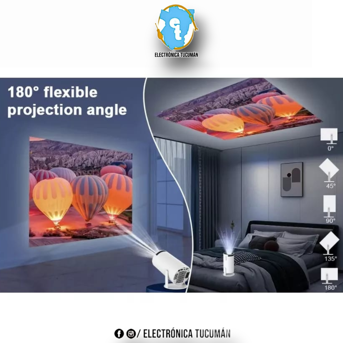 Ángulo de proyección ajustable de 180°, permite girarlo en cualquier ángulo para reproducir vídeos o imágenes. Admite corrección automática y enfoque manual.
