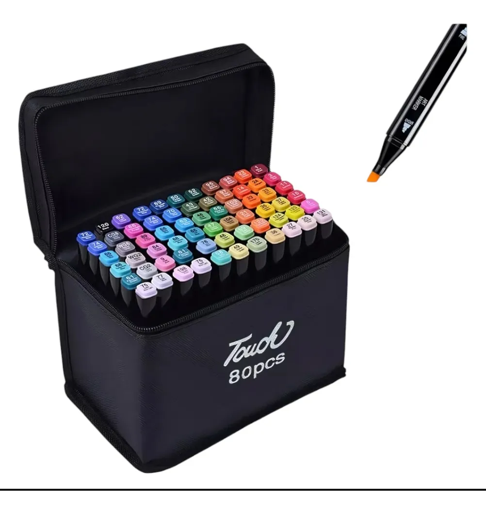 LOS MEJORES FIBRONES !DOBLE PUNTA PERMITE DIBUJAR ESCRIBIR TRAZOS FINOS Y GRUESOS. COLORES VIBRANTES IDEAL PARA CUALQUIER PROYECTO.SET 80 MARCADORES CON ESTUCHE TRANSPORTADOR DE REGALO.